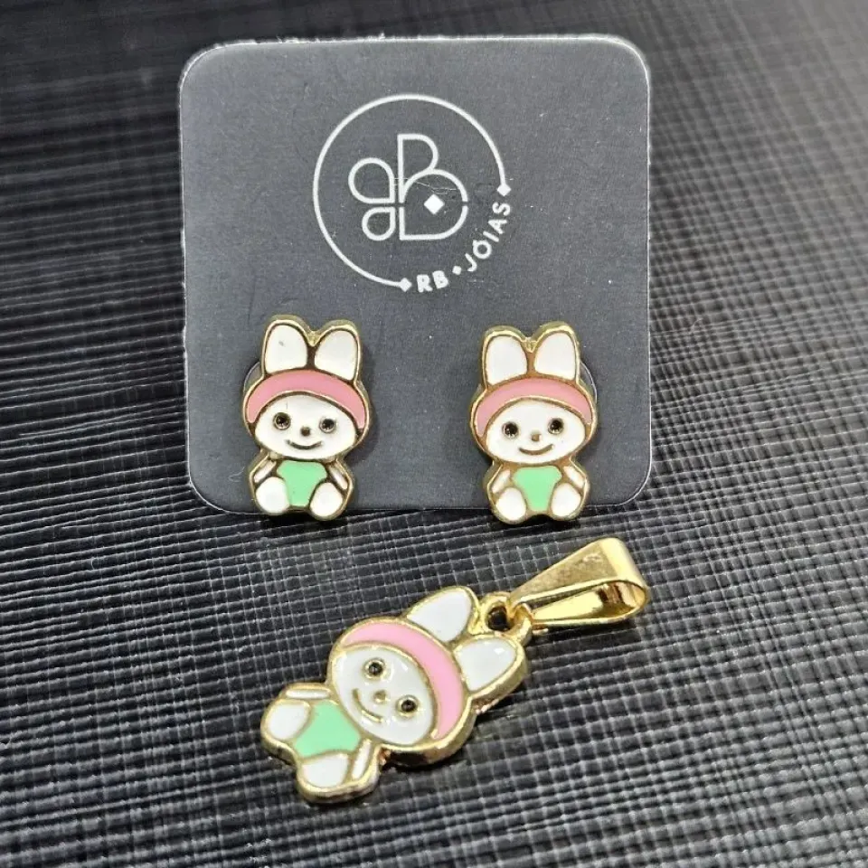 CONJUNTO PEDRA OVAL CRAVEJADO ELO SINGAPUR...