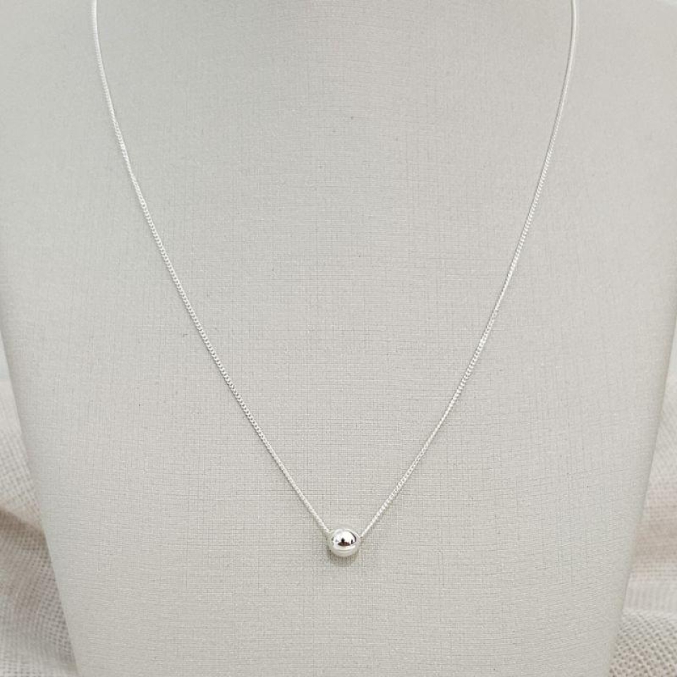 Gargantinha com corrente veneziana de 45cm e pingente formato Bola na madrepérola, Prata 925.