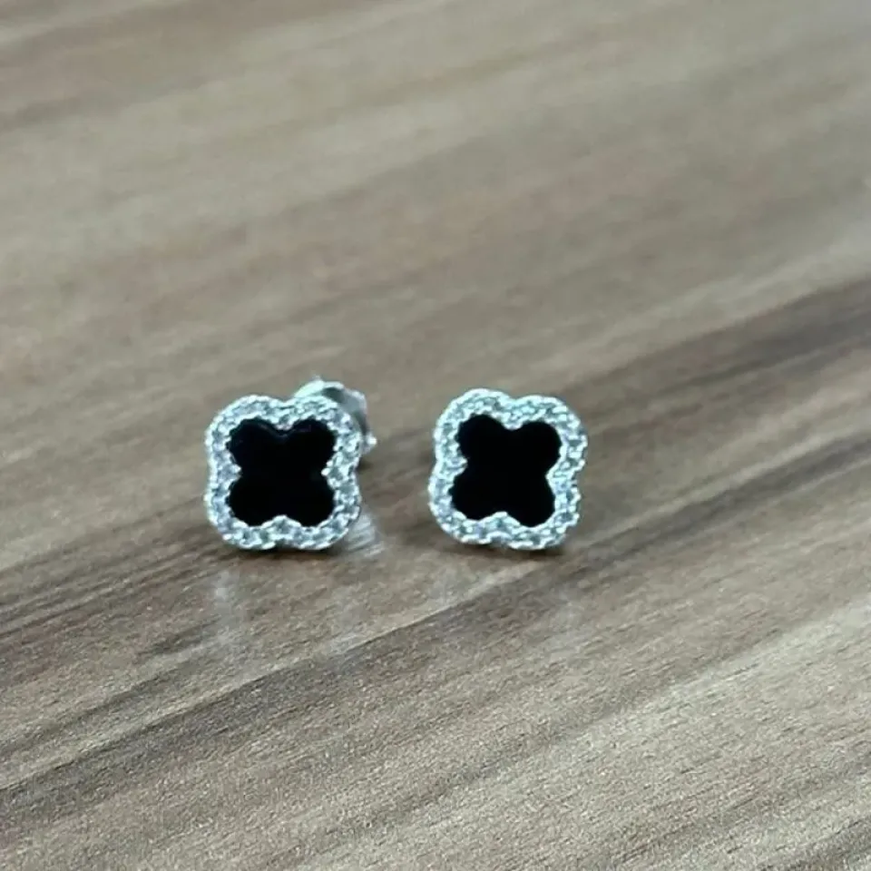 BRINCO TREVO VAN CLEEF PRETO BORDA CRAVEJA...