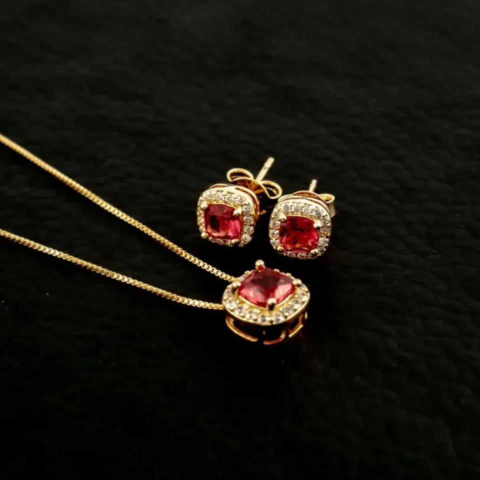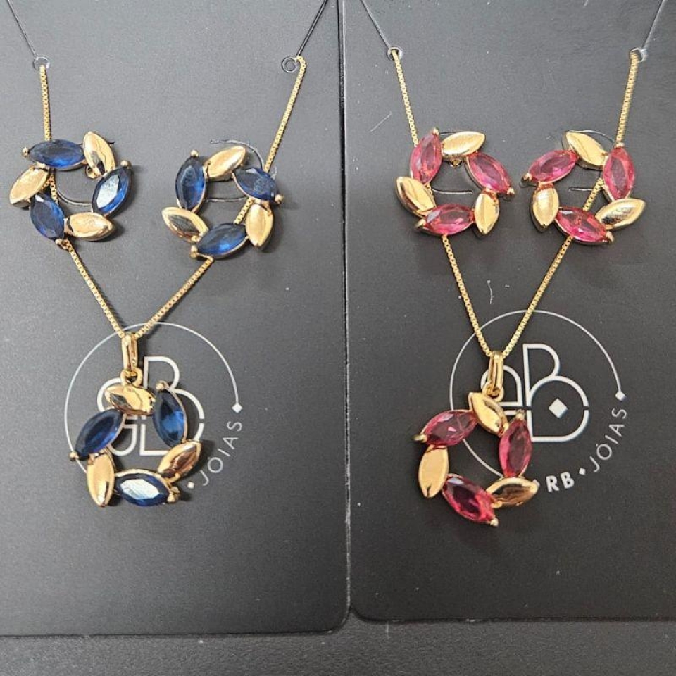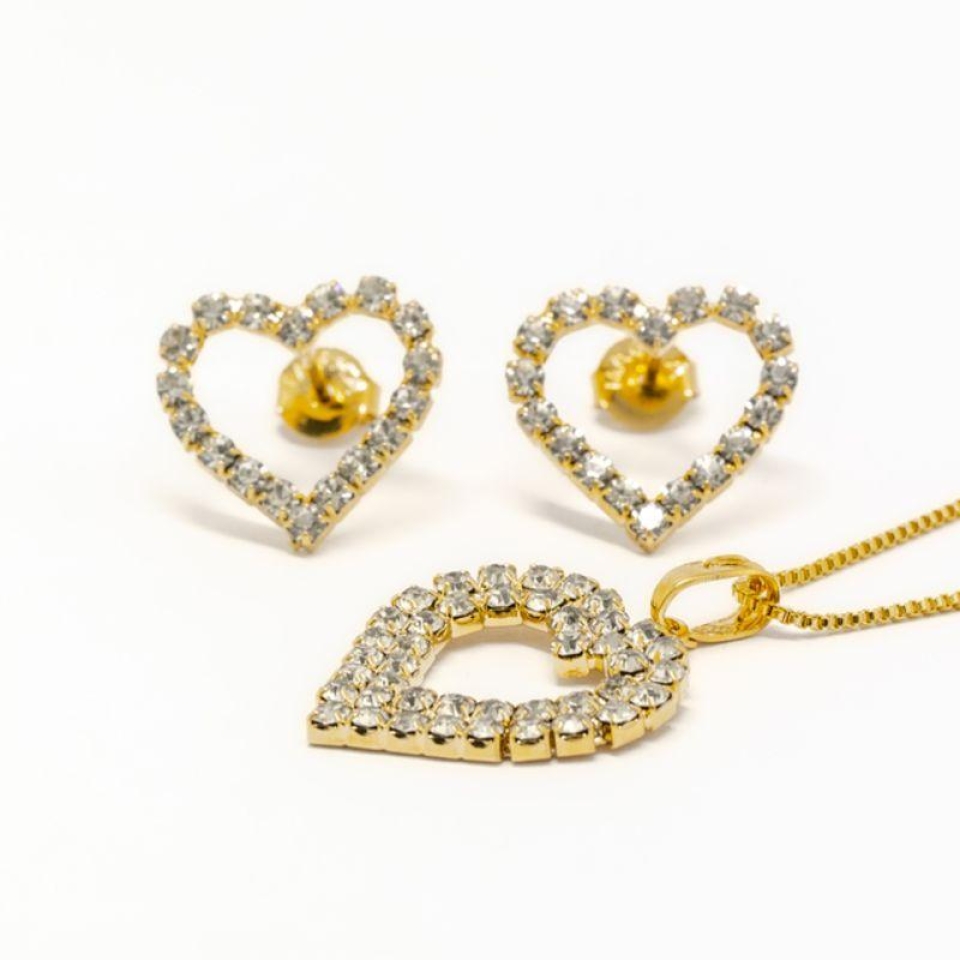 CONJUNTO CORAÇÃO PEDRA CRISTAL BORDAS CRAV...